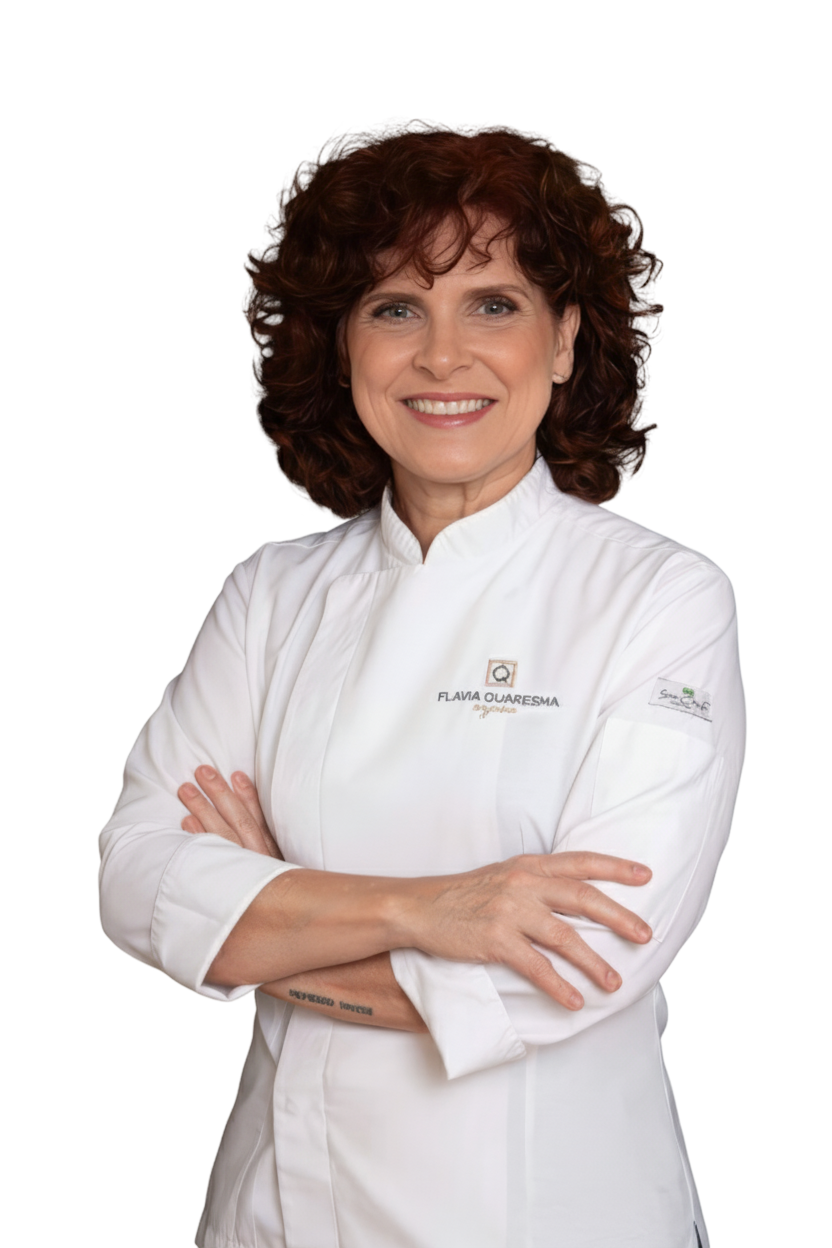 Sou Flávia Quaresma, chef de cozinha e apaixonada por ensinar e compartilhar o que aprendi ao longo da minha jornada.